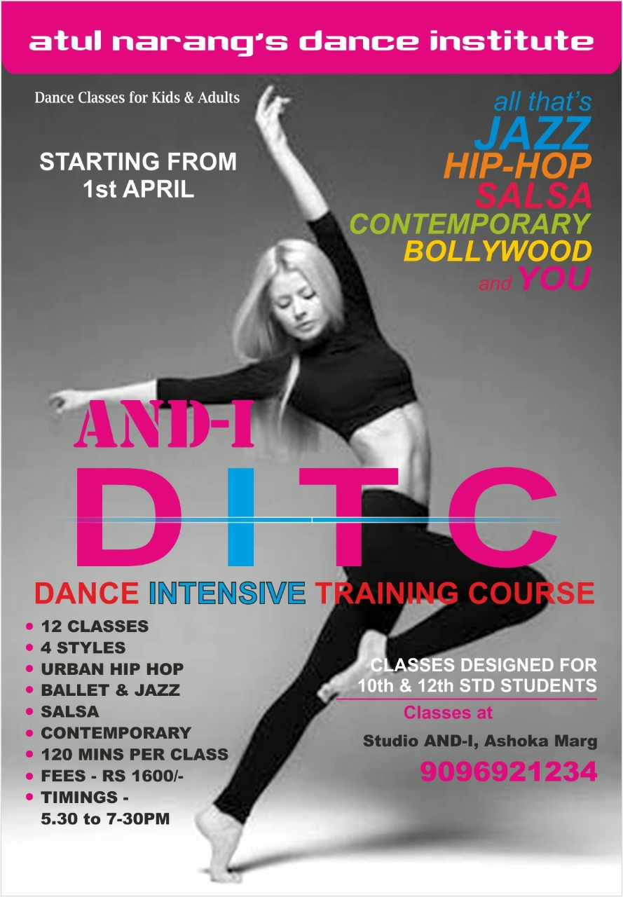 Hello Dance Lovers atul narangs dance institute is back with its Dance Intensive Training Course with some exciting routines and styles. This year we also have special instructors in the house. So block your calendar for the month of April. Special classes designed for students of class 12th and class 10th. Book your space now. For more details just call us.