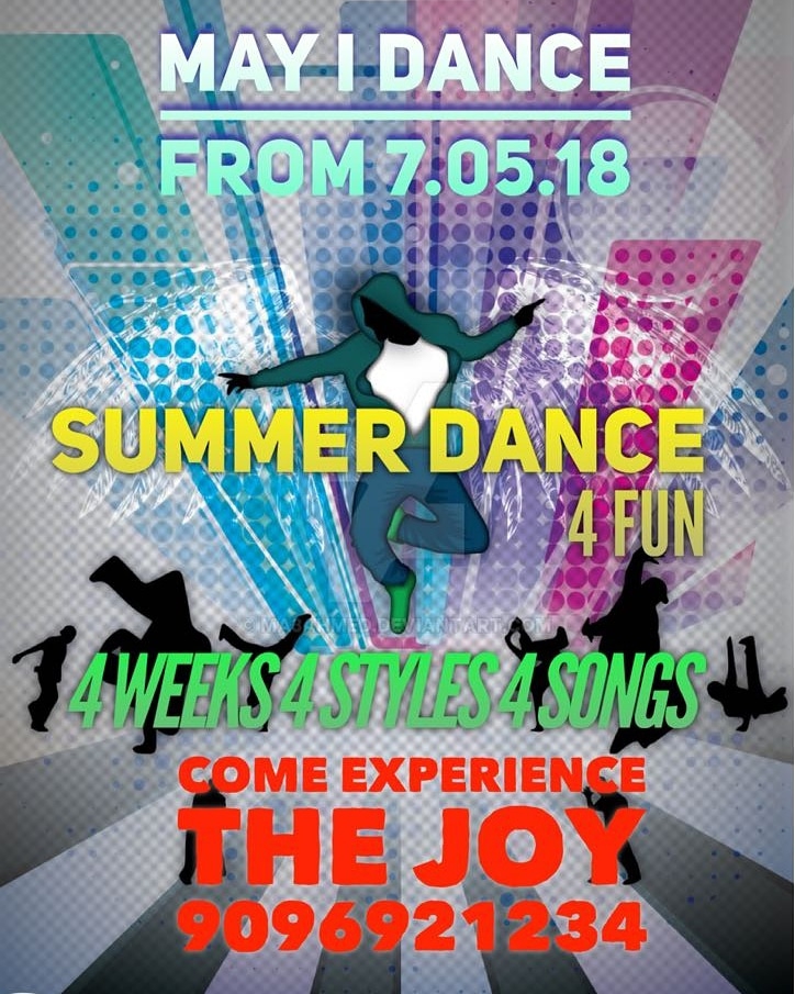 MAY I DANCE From 7th May 2018 After A Super Duper Hit show SUMMER JAM Atul Narangs Dance Institute brings to YOU DANCE 4 FuN. 4 weeks 4 styles 4 Songs 4 YOU ANDI 9096921234 9096925678 Juniors: 5pm Toddlers: 6pm Teens: 7pm Seniors: 8pm Fees. Rs. 1000/- only