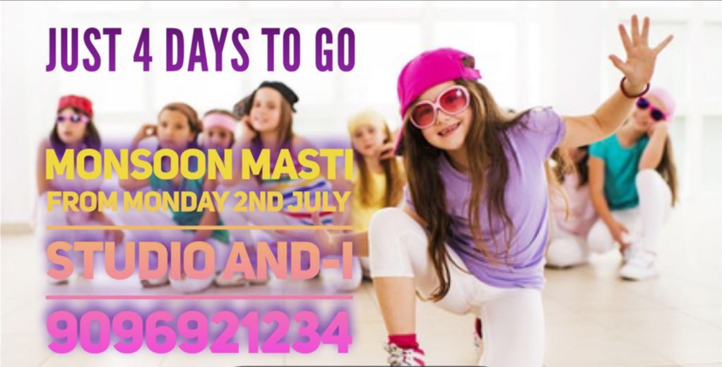 Now Dance Class 4 Days in a week. Monsoon Masti from 2nd July only at Studio AND-I Ashoka marg. Come to Dance Learn and Perform on your Favourite songs. Just 4 Days to Go.